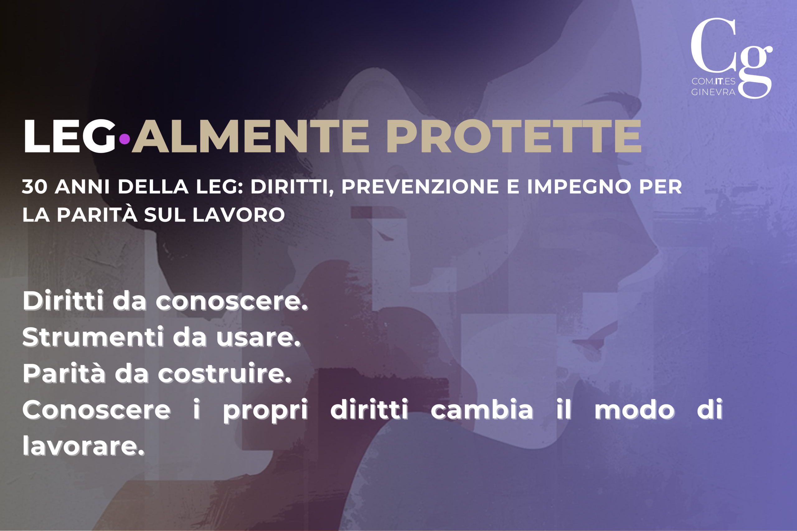 In occasione dei 30 anni della legge federale svizzera sulla parità tra donne e uomini (detta anche “LEg”), il Comites di Ginevra vuole offrire un momento di informazione accessibile, in lingua italiana, per capire meglio e confrontarci sui diritti di chi lavora, la prevenzione delle discriminazioni e la parità.